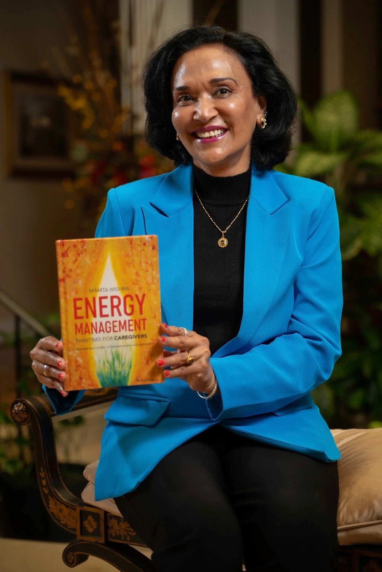 Her second book, Energy Management – Mantras for Caregivers, centers on caregiver wellness. It is a deeply affirming guide designed to help caregivers protect their emotional and mental energy through daily mantras, grounding practices, and intentional living.